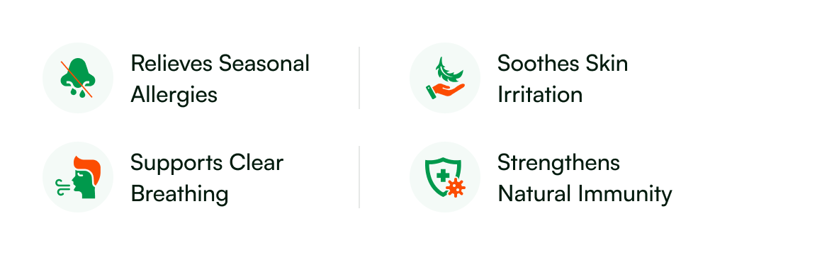 Traditionally used for sneezing, runny nose, watery eyes, skin irritation, and seasonal allergies.